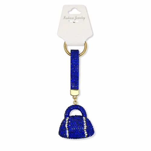 Брелок с карабином сумка из страз, синий
