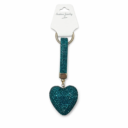 Брелок с карабином сердце из страз, изумрудный