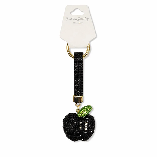 Брелок с карабином яблоко из страз, черный