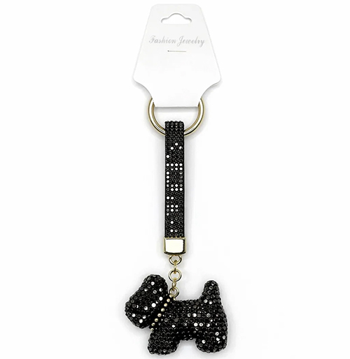 Брелок с карабином собака из страз, черный