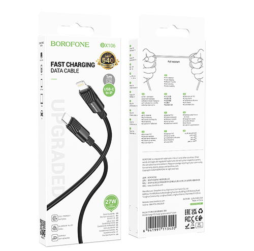 Кабель Type-C - Lightning Borofone BX98 1M, 27W, черный