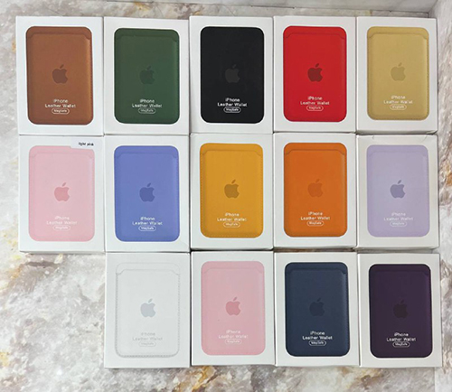 Картхолдер Leather Wallet под кожу с логотипом, MagSafe+анимация, пудра