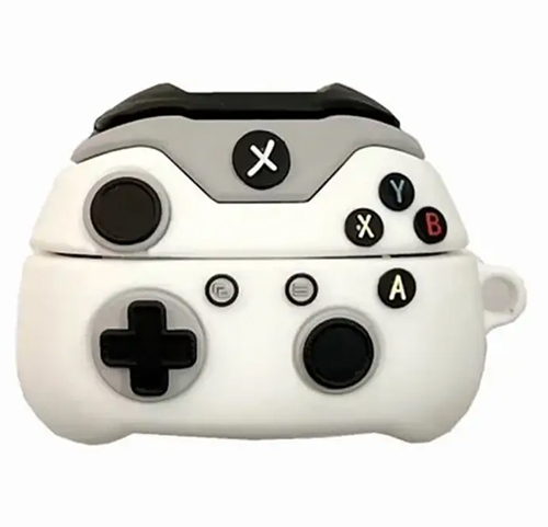 Силиконовый чехол для Air Pods 1/2 фигурный, утолщенный, с карабином, геймпад белый