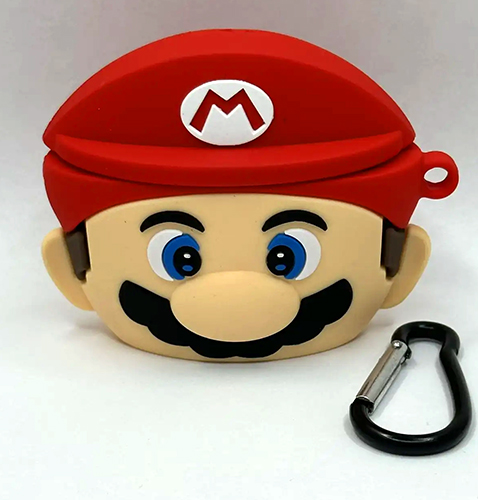 Силиконовый чехол для Air Pods 1 / 2 фигурный, утолщенный, с карабином, Супер Марио