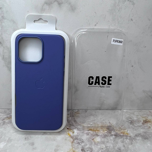 Задняя крышка CASE Iphone 13/14 под кожу с логотипом, в блистере, №1 синяя