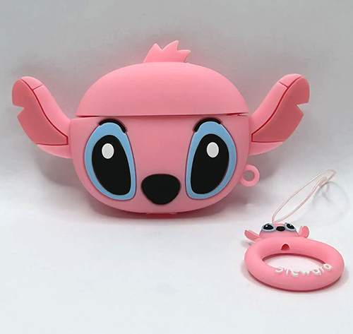 Силиконовый чехол для Air Pods PRO фигурный, утолщенный, с держателем, Стич розовый