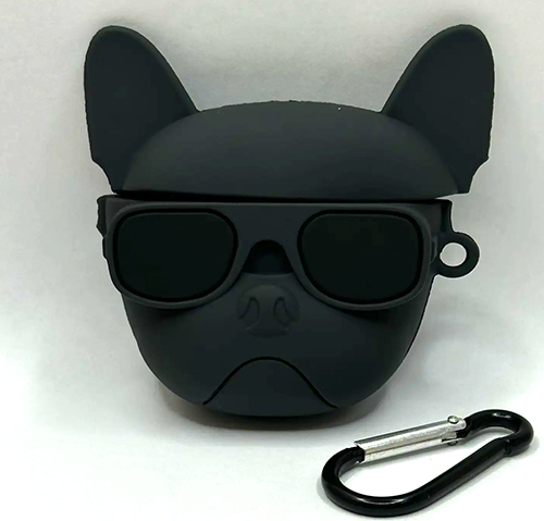 Силиконовый чехол для Air Pods PRO фигурный, утолщенный, с карабином, мопс в очках черный