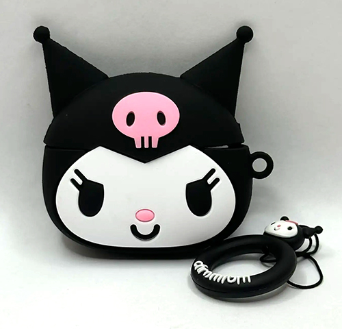 Силиконовый чехол для Air Pods PRO фигурный, утолщенный, с держателем, KUROMI черный