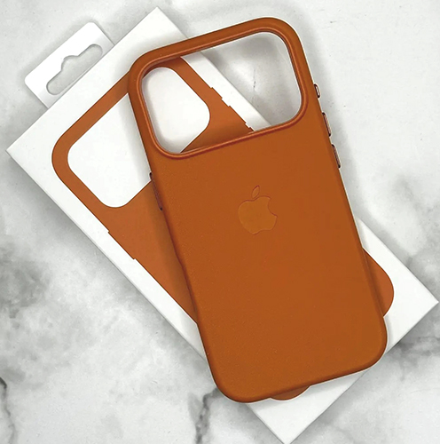 Задняя крышка Iphone 14 Pro Leather Case под кожу, с лого, magsafe, в упаковке, оранжевая