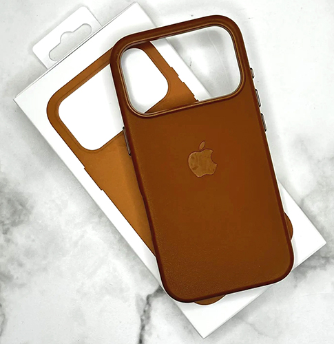 Задняя крышка Iphone 14 Pro Leather Case под кожу, с лого, magsafe, в упаковке, коричневая