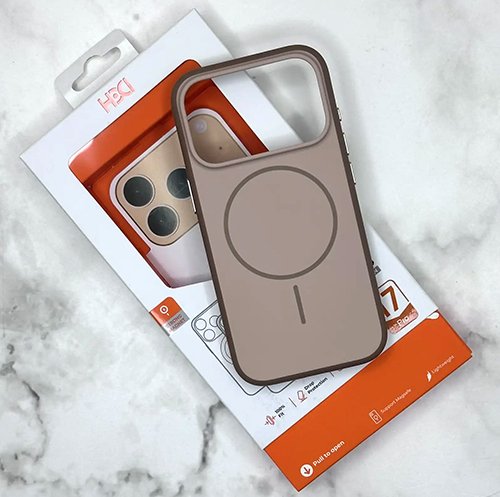 Задняя крышка HDD Iphone 17 Pro матовая с MagSafe, металлические кнопки, силиконовый борт, коричневая