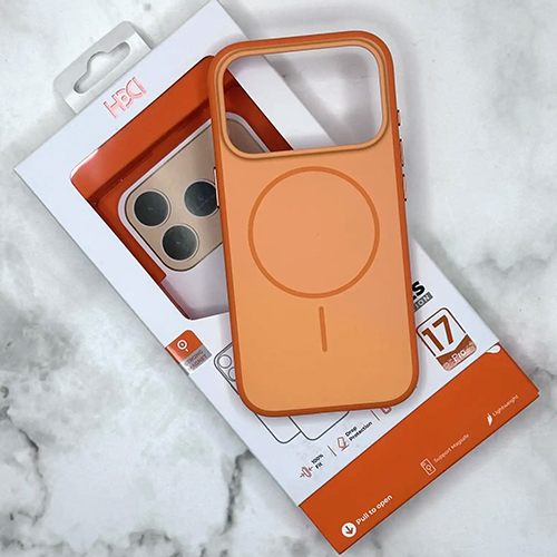 Задняя крышка HDD Iphone 17 Pro матовая с MagSafe, металлические кнопки, силиконовый борт, оранжевая