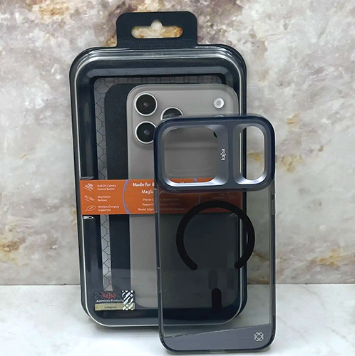 Задняя крышка KAJSA Iphone 17 Pro пластиковая, прозрачная, металлическая оконтовка камеры, MagSafe, черная