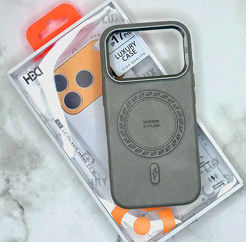 Задняя крышка HDD Iphone 17 Pro MODERN LUX под кожу c Magsafe, камера-подставка, серый титан