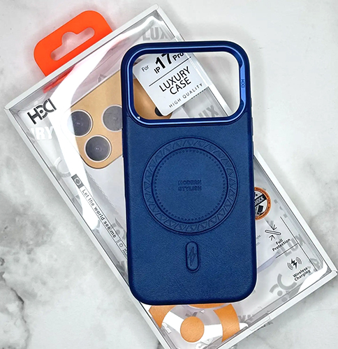 Задняя крышка HDD Iphone 17 Pro MODERN LUX под кожу c Magsafe, камера-подставка, темно-синяя