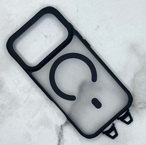 Задняя крышка Iphone 17 Pro SkyArmor матово-прозрачная, с креплением под шнурок, MagSafe, черная