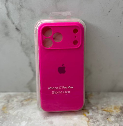Силиконовый чехол Iphone 17 Pro Silicone Case, с защитой камеры, с логотипом, в блистере, ярко-розовый