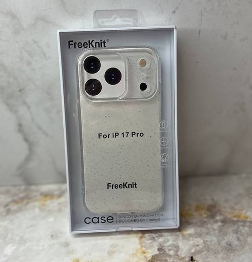 Силиконовый чехол Iphone 17 Pro FreeKnit прозрачный с блестками, в коробке, прозрачный