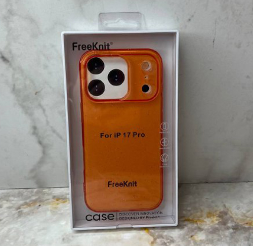 Силиконовый чехол Iphone 17 Pro FreeKnit прозрачный с блестками, в коробке, оранжевый