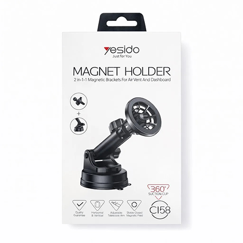 Автомобильный держатель Yesido магнитный, на присоске + крепление на решетку вентиляции (CI58), черный