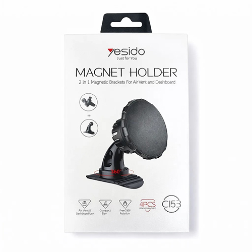 Автомобильный держатель Yesido магнитный, вращение 360, на торпеду + крепление на решетку вентиляции, (C153), черный