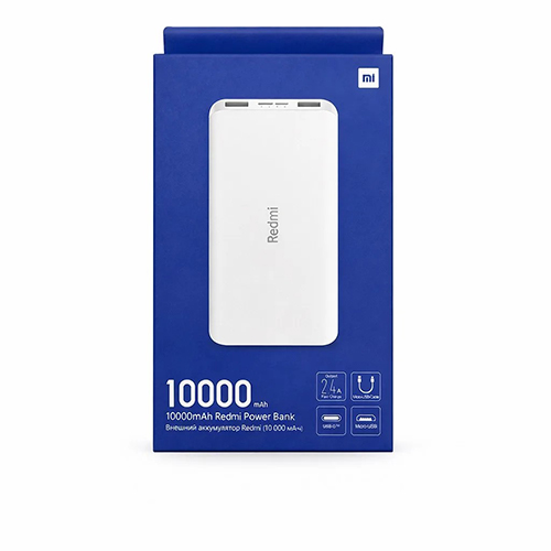 Аккумулятор внешний Xiaomi Redmi 10000mAh, LED-индикатор, порты 2 USB/Type-C/micro USB, кабель USB to micro USB, 2.4A, (PB100LZM), белый