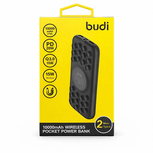 Аккумулятор внешний Budi 10000mAh, PD20w, беспроводная зарядка + присоски, порты Type-C/micro USB, (PB099B), черный
