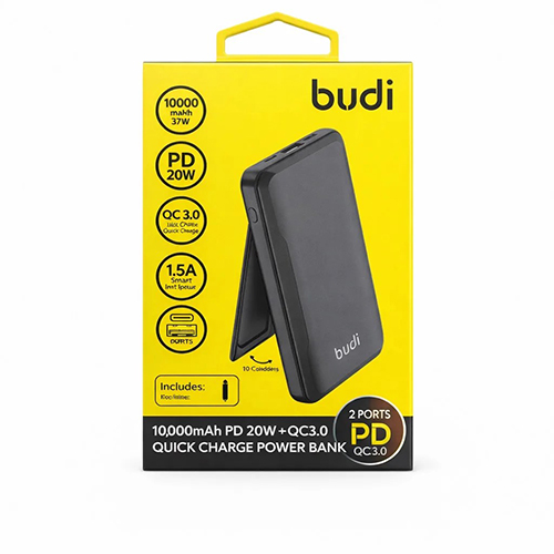 Аккумулятор внешний Budi 10000mAh, PD20w, беспроводная зарядка + присоски, порты Type-C/micro USB, (PB099B), черный
