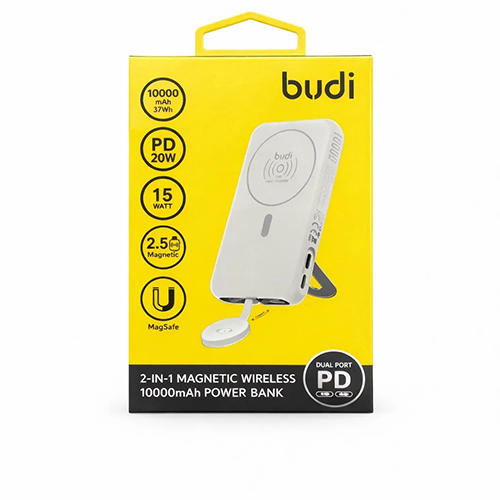 Аккумулятор внешний Budi 10000mAh, PD20w, LED, с MagSafe, Watch Charging 2.5W, порты 2Type-C / Lightning, кабель Type-C to Type-C, 30см, (PB806W), белый