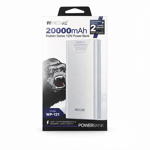 Аккумулятор внешний Wekome Kiren Series 20000mAh, PD12w, LED-индикатор, порты 2 USB / Type-C, (WP-121), белый