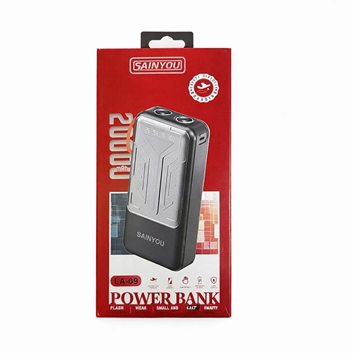 Аккумулятор внешний SAINYOU 20000mAh, порт Type-C, 4 встроенных кабеля USB / Type-C / Lightning / micro USB, яркий фонарик, (LA-09), белый