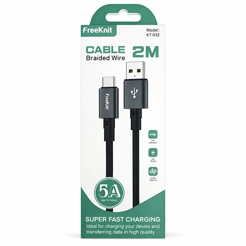 Кабель USB FreeKnit для Type-C, 5A, 2M, ткань, (KT-032), черный