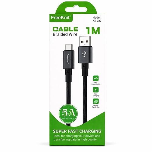 Кабель USB FreeKnit для Type-C, 5A, 1M, ткань, (KT-027), черный