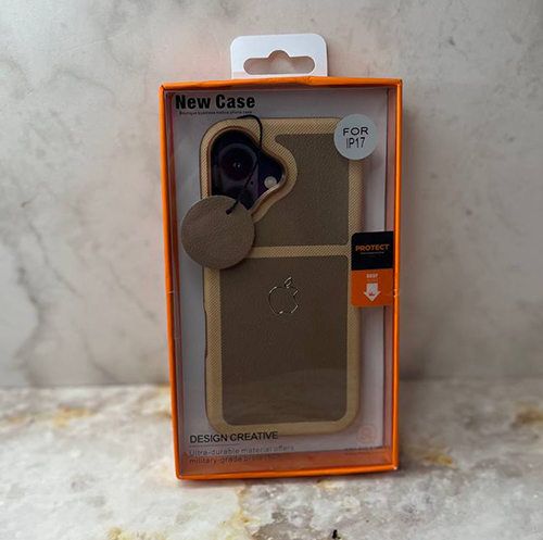Задняя крышка CASE Iphone 17 Pro под кожу с логотипом, в блистере, №6 оранжевая