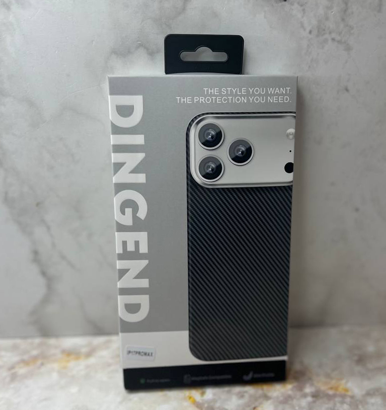 Задняя крышка Iphone 17 Pro DINGEND под карбон с MagSafe, металлическая оконтовка камеры, черная