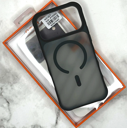 Задняя крышка iPefet Iphone 17 Pro матово-прозрачная с MagSafe, металл. оконтовка камеры, ребристая поверхность, черная