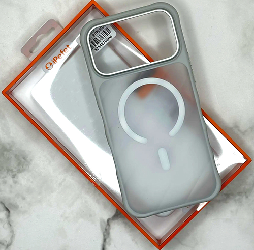 Задняя крышка iPefet Iphone 17 Pro матово-прозрачная с MagSafe, металл. оконтовка камеры, ребристая поверхность, белая