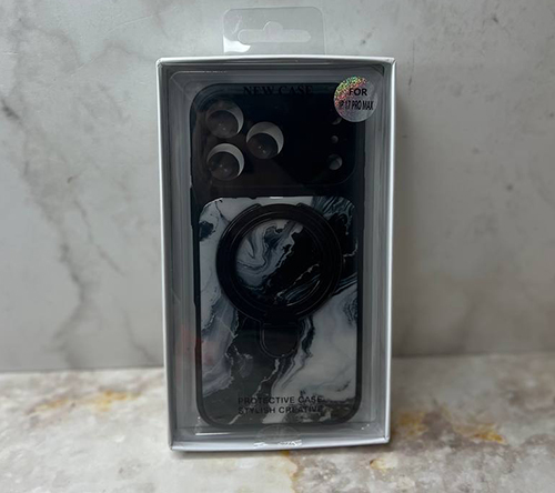 Задняя крышка Iphone 17 Pro Max NEW CASE под мрамор, пластиковая, MagSafe-подставка, черная