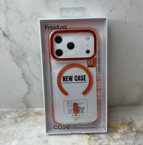 Задняя крышка Iphone 17 Pro Max FreeKnit прозрачная, MagSafe. металлические кнопки, оранжевая