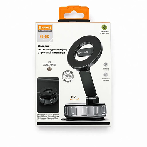 Автомобильный держатель HAIMES магнитный, вращение на 360, на присоске (HS-803), черный