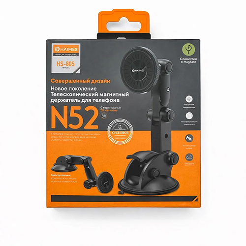 Автомобильный держатель HAIMES телескопический, магнитный, вращение на 360, на присоске (HS-805), черный
