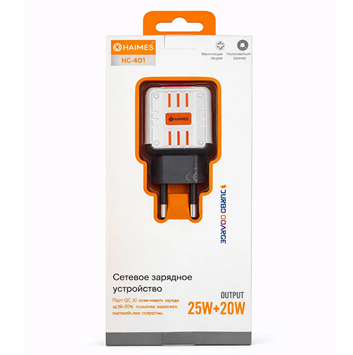 Блок питания сетевой HAIMES 1 USB 20W + 1 Type-C 25W, (HC-101), белый