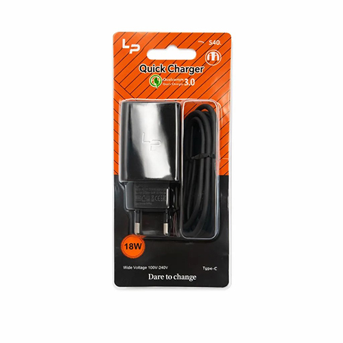 Блок питания сетевой LP (S40t) 1 USB 18W, с кабелем USB to Type-C, 1M, (B5070), черный